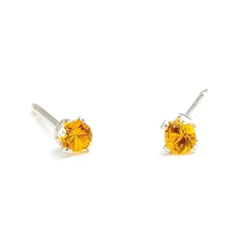 3mm Tiny Yellow Orange Topaz Gemstone Post Stud Earrings in Sterling Silver - November Birthstone